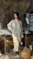 Льняной костюм в корейском стиле свободная рубашка с акцентными застежками и брюки алладин расслабленный силуэт и стильный минимализм.