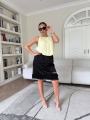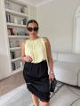 Такой топ отличается а-образным силуэтом: он плотно сидит на груди и постепенно расширяется к низу.