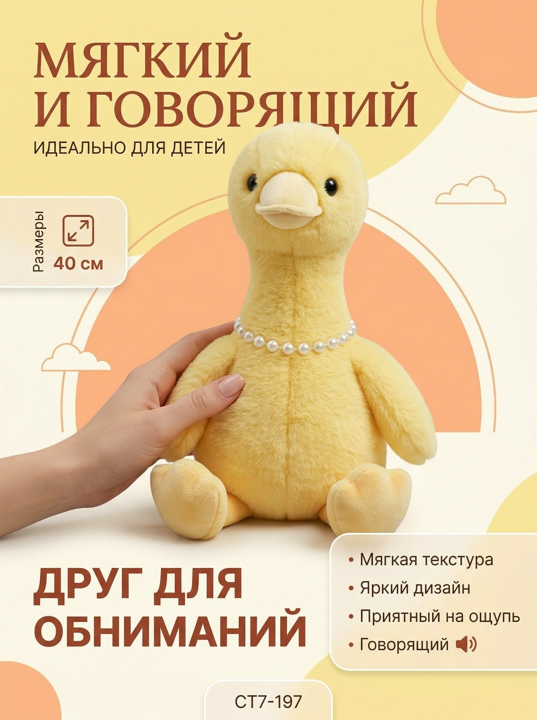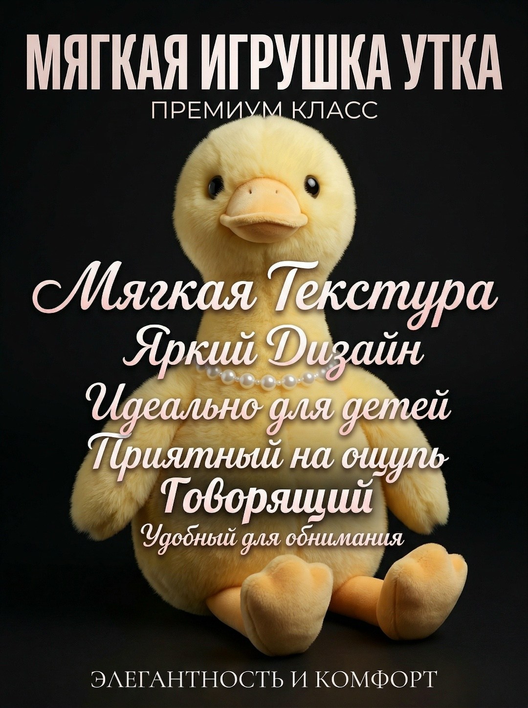 Мягкая игрушка большая плюшевая уточка 25 см.
