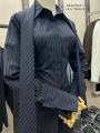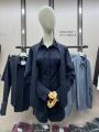 Рубашка свободного кроя с длинным рукавом и аккуратным воротником, выполнена в классическом тмно-синем цвете с тонкой полоской Шорты в том же дизайне создают гармоничный и современный образ идеально для повседневных выходов или стильного отдыха.