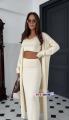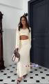 Элегантная трикотажная тройка с топом, юбкой и длинным кардиганом.