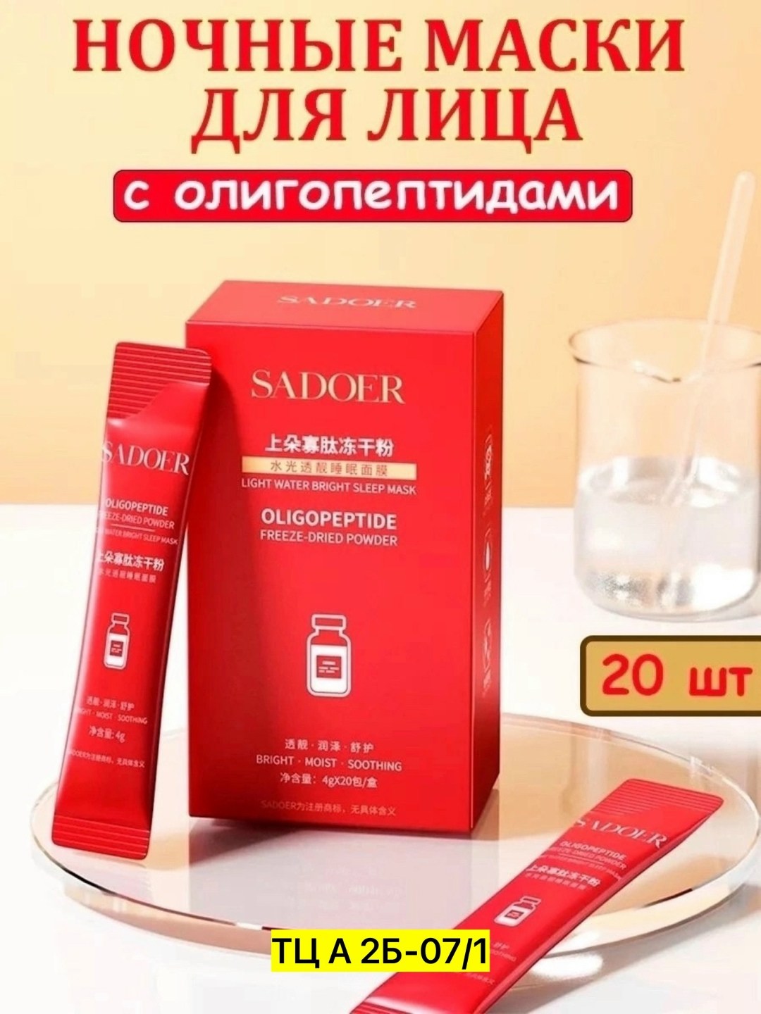 Sadoer ночная маска для лица с олигопептидами, упаковка 20 шт по 4гр.