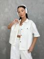 Кароткая джинсовая рубашка