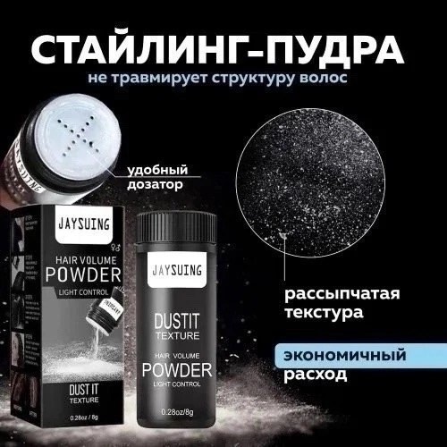 Если вам хочется объема и пышности в волосах, либо волосы недостаточно послушны и нужна хорошая фиксация без утяжеления, при этом лак для волос уже не в почете, тогда эта пудра для объема волос ваше спасение В современном ритме жизни мы не всегда находим время посетить салон красоты, поэтому пудра для объема и укладки волос dust it texture hair volume powder от jaysuing станет вашей палочкой-выручалочкой Она легка в использовании, имеет едва заметный приятный запах и невесомую текстуру Отлично фиксирует прическу, не утяжеляя ее и не склеивая локоны, благодаря чему прическа выглядит естественно, а главное - пышно и объемно Ведь тонким волосам сложно поддерживать объем в течение дня Для их укладки нужны специальные средства, например, лак или пудра Даже лак для волос профессиональный делает прическу неподвижной, а волосы липкими Пудра рассыпчатая же позволяет сохранить естественность и обеспечить прическе привлекательный вид.