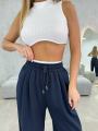 Трикотажные штаны в спортивном фасоне с кулиской ами снизу - это удобная и стильная женская одежда на каждый день.