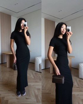 Платье макси базовое с короткими рукавами.