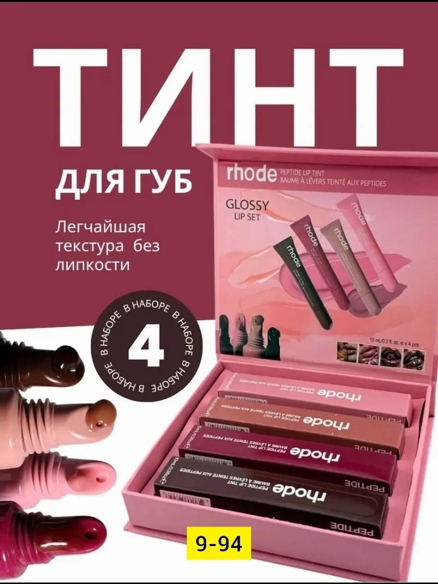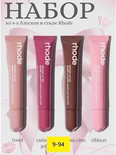 Набор блесков для губ в стиле rhode - идеальный набор, состоящий из 4-х увлажняющих бальзамов для заметно пухлых и мягких губ днем или ночью.