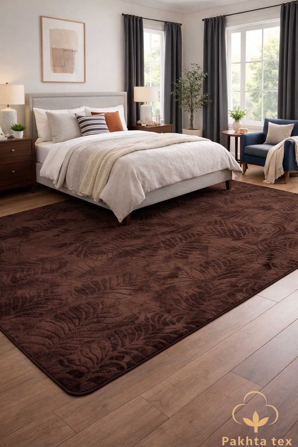 Ковр с мягким ворсом и листообразным рельефным узором.
