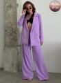 Прямой пиджак с 2 бортами и карманами с клапанами и широкие брюки.