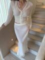 Милые, женственные и легкие костюмы-двойки Сочетание юбки макси и кардигана с кружевными вставками.
