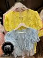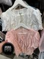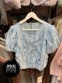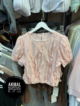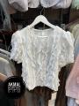 Блузка волнительные волны с коротким рукавом и объемным декором из воланов уникальная модель дерзкой элегантности, сочетающая классику и авангард, станет вашим секретным оружием для преображения стиля, гарантируя уверенность и притягивая восхищенные взгляды.