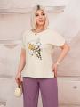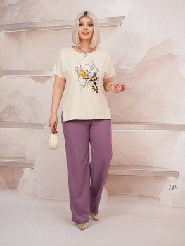 56 размер: блуза ог-117 см; длина 66 см; брюки резинка 84/109 см; об-121 см; длина 108 см.