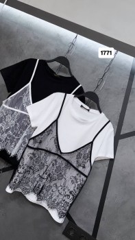 Стильные футболочки со съемным декором из гипюра.