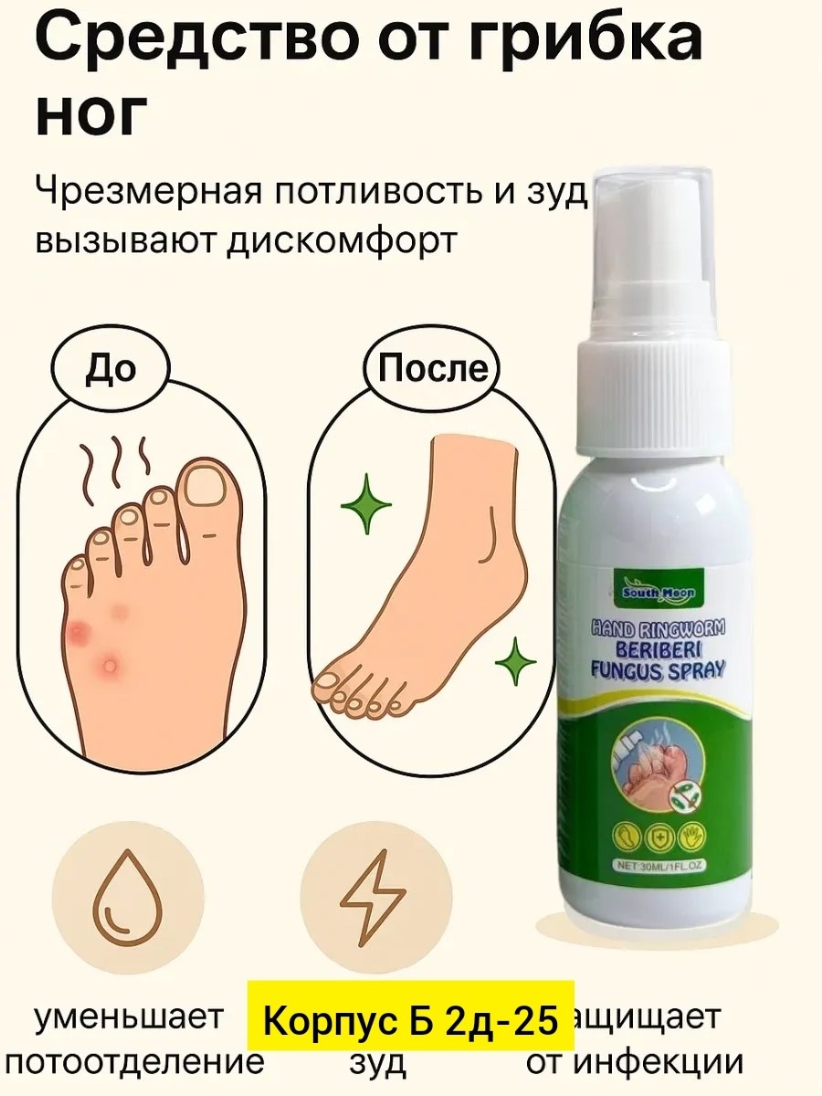 Противогрибковый спрей для ногтей эффективная защита и восстановление кожи с первого применения Противогрибковое средство для обработки обуви.