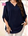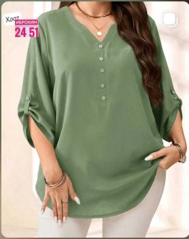 Женская блузка свободного кроя с v-образным вырезом.