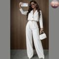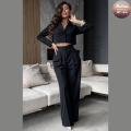 Элегантность в движении: женский брючный костюм, где укороченный пиджак встречается с брюками-палаццо Этот ансамбль воплощение смелой женственности и утонченного стиля, призванный подчеркнуть вашу индивидуальность.