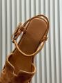 В каждом миллиметре дерзость: платформа это ваш личный подиум, возносящий вас на 7,5 сантиметров чистого воодушевления, с элегантной разницей в 3 сантиметра между передней частью и каблуком, дарующей несравненный комфорт и грацию Черная резиновая опора, облаченная в изыск замши и козьей кожи, это твердая гарантия вашей уверенности на каждом витке судьбы.