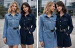 Джинсовое платье-рубашка с поясом, накладными карманами и пуговицами по всей длине Плотный деним, аккуратный крой и универсальная длина для стильных повседневных образов.
