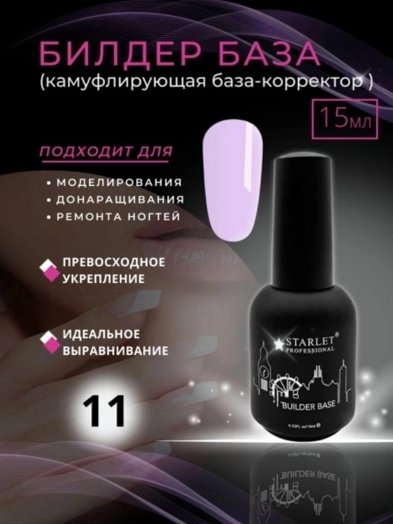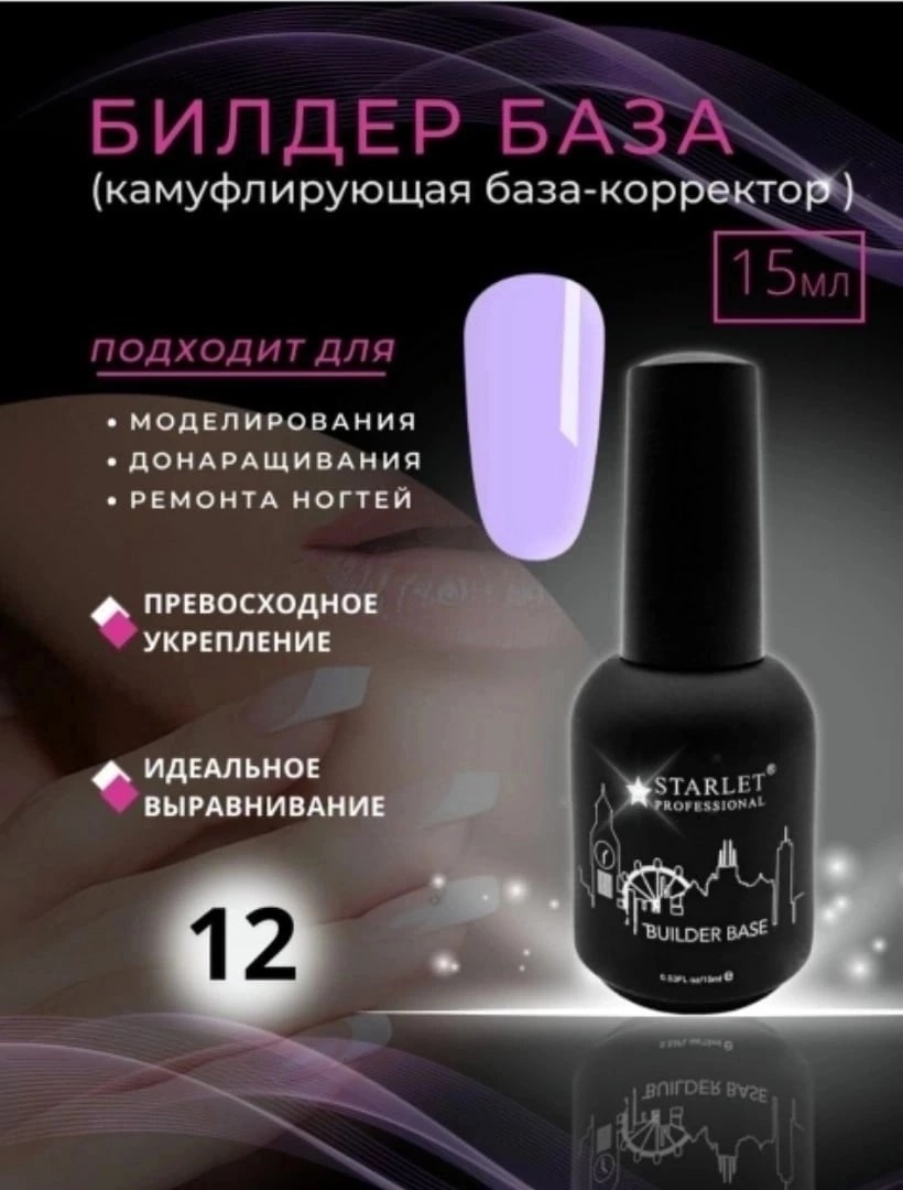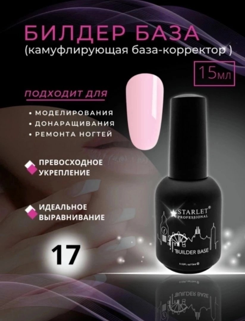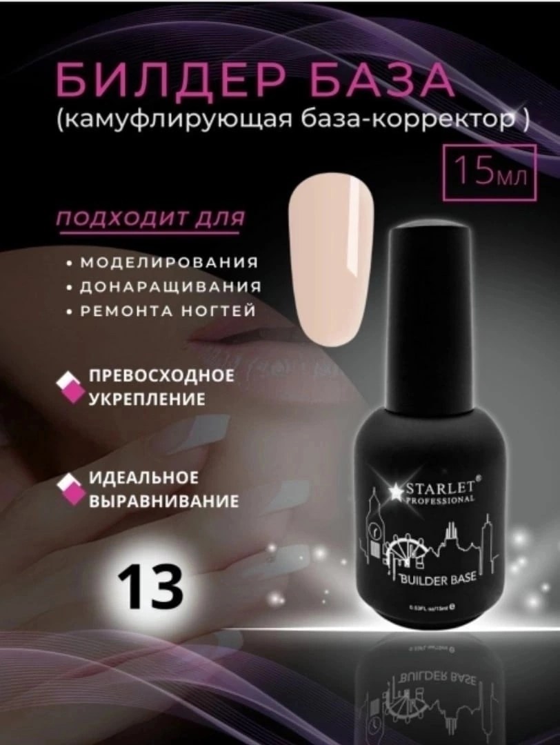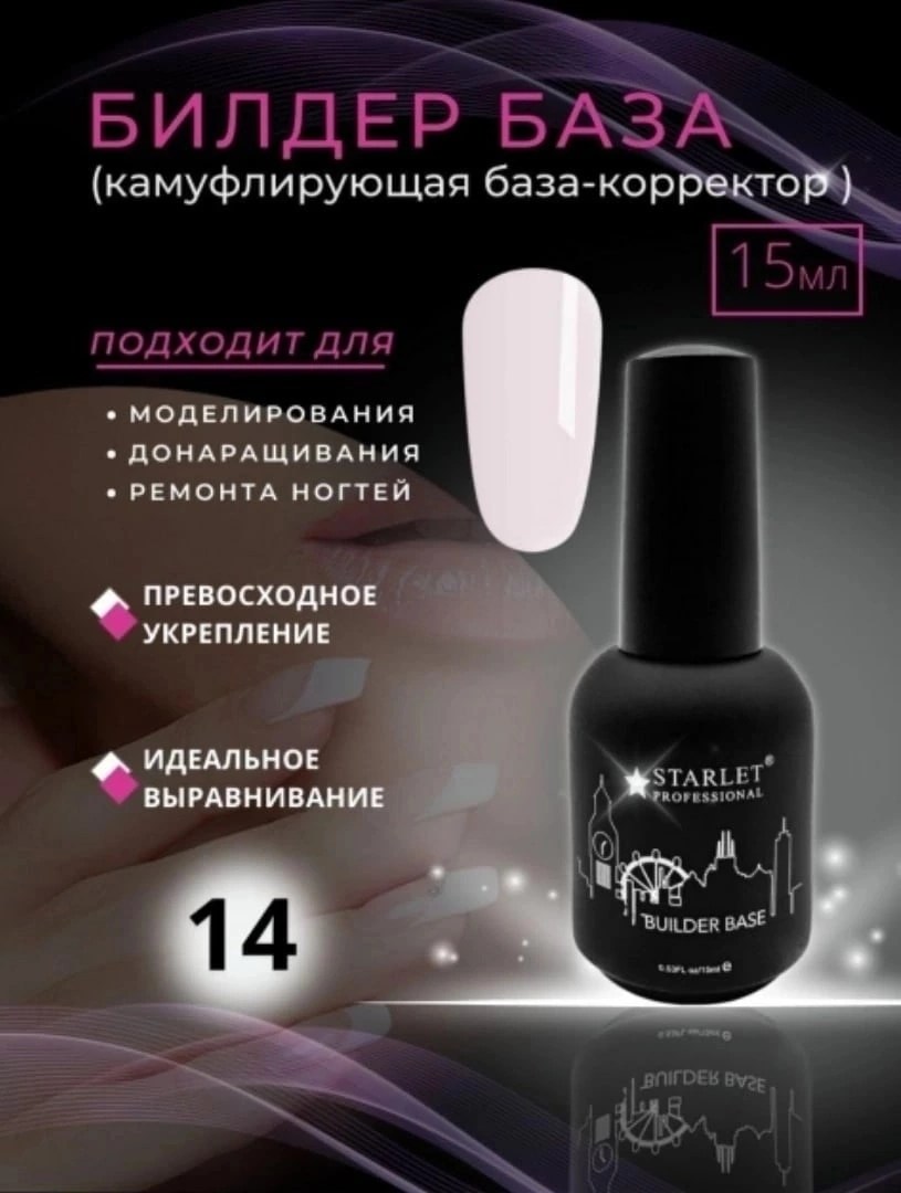 Билдер база builder base coat (строительная база для гель лака) от starlet professional - многоцелевой нейл-материал, который пригодится тем, кто работает со стойким маникюром профессионально или на уровне новичка Обладает не только прекрасными выравнивающими свойствами, позволяя сделать ногтевую поверхность гладкой и ровной, но также может выступать в роли моделирующего базового покрытия, легко поддающееся опилу, формирующее идеальную архитектуру ногтя и позволяющее при необходимости нарастить длину свободного края до 7 мм Билдер база для гельлака имеет цвет, поэтому отлично подойдет в качество основы под французский маникюр/френч Ею также можно окрашивать ноготки при создании нежного нюдового маникюра Билдер база камуфлирующий жидкий гель имеет высокие адгезионные свойства, что предотвращает отслойки, трещины в процессе носки Длительность носки 4-6 недель Флакон 15 мл имеет удобную кисть Технология нанесения!! Билдер базу строго наносить на подложку (тонкий слой) из эластичной (rubber) базы Творческих.