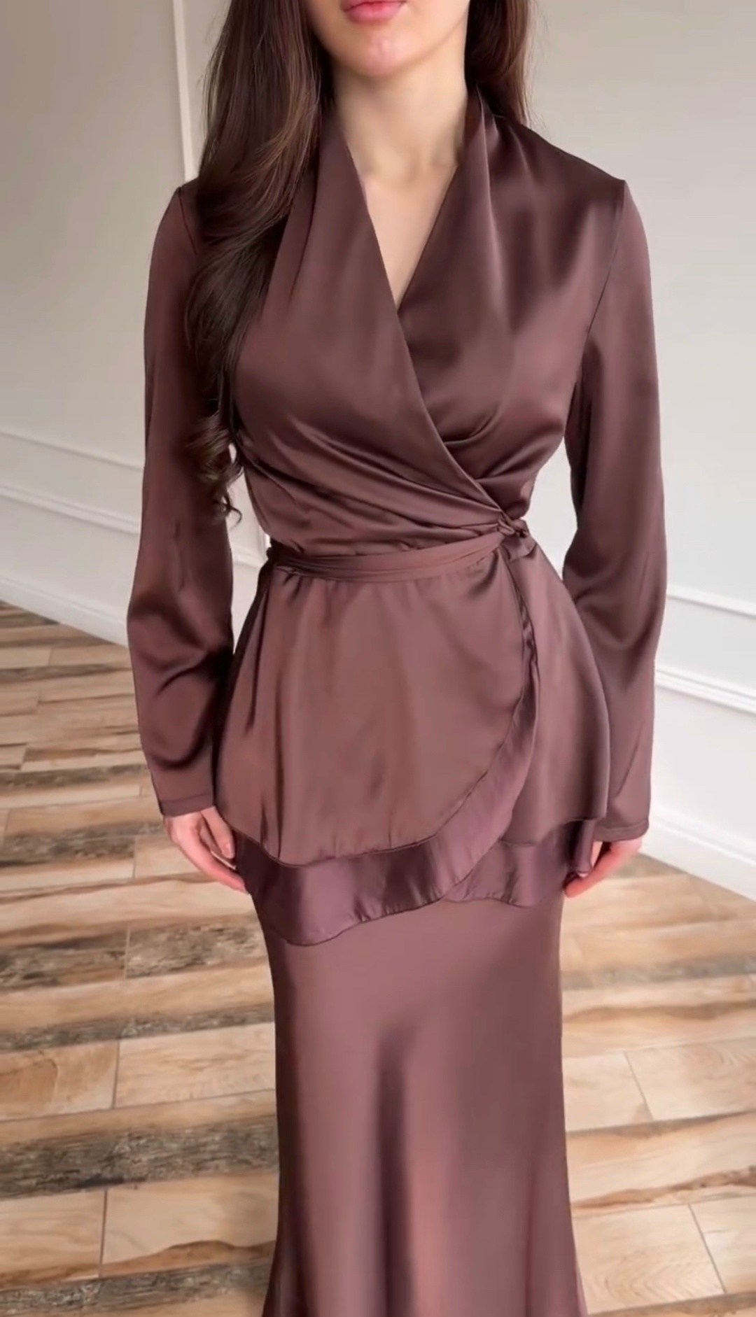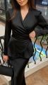 Жакет на запах с мягкой драпировкой подчркивает талию и создат женственный силуэт Многослойный низ добавляет образу объма и утончнной динамики.