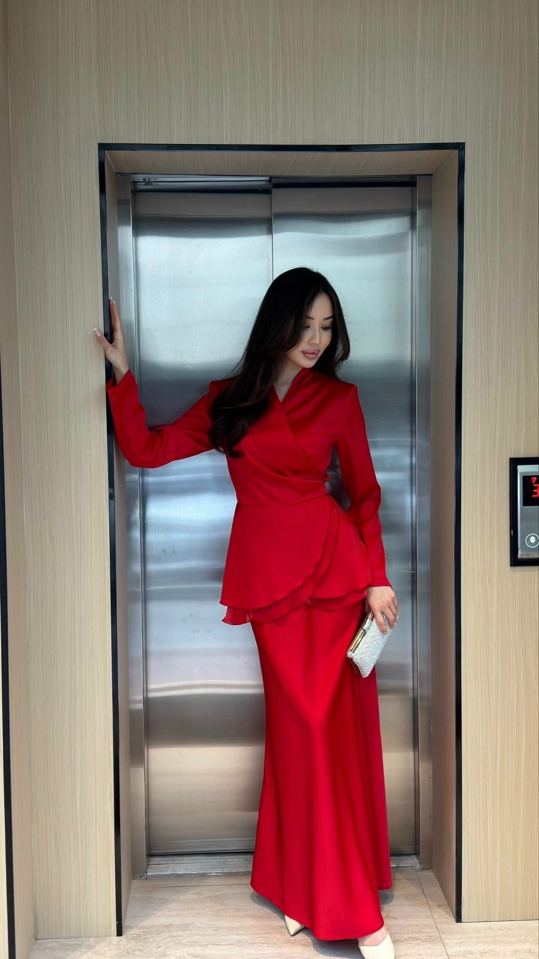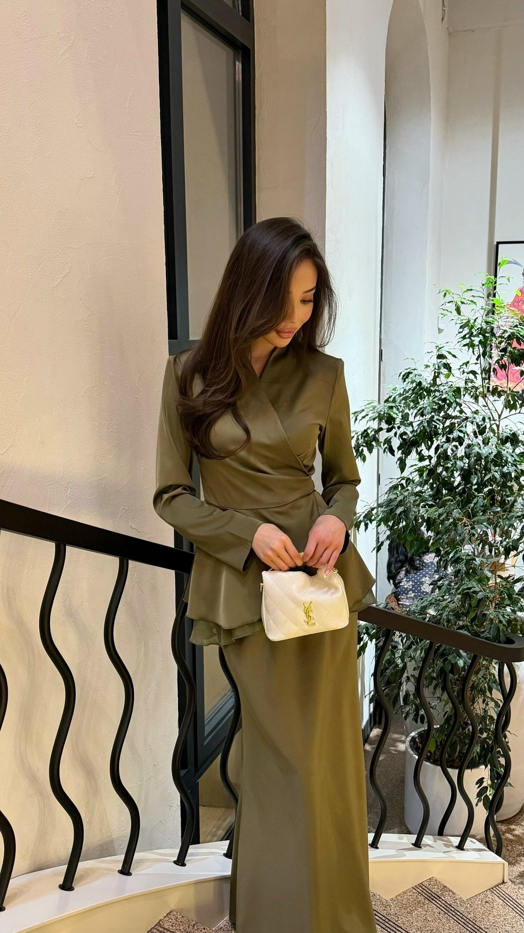 Юбка по косой визуально вытягивает фигуру и делает образ завершнным.