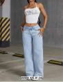 Джинсы стрейч с прямыми широкими штанинами.
