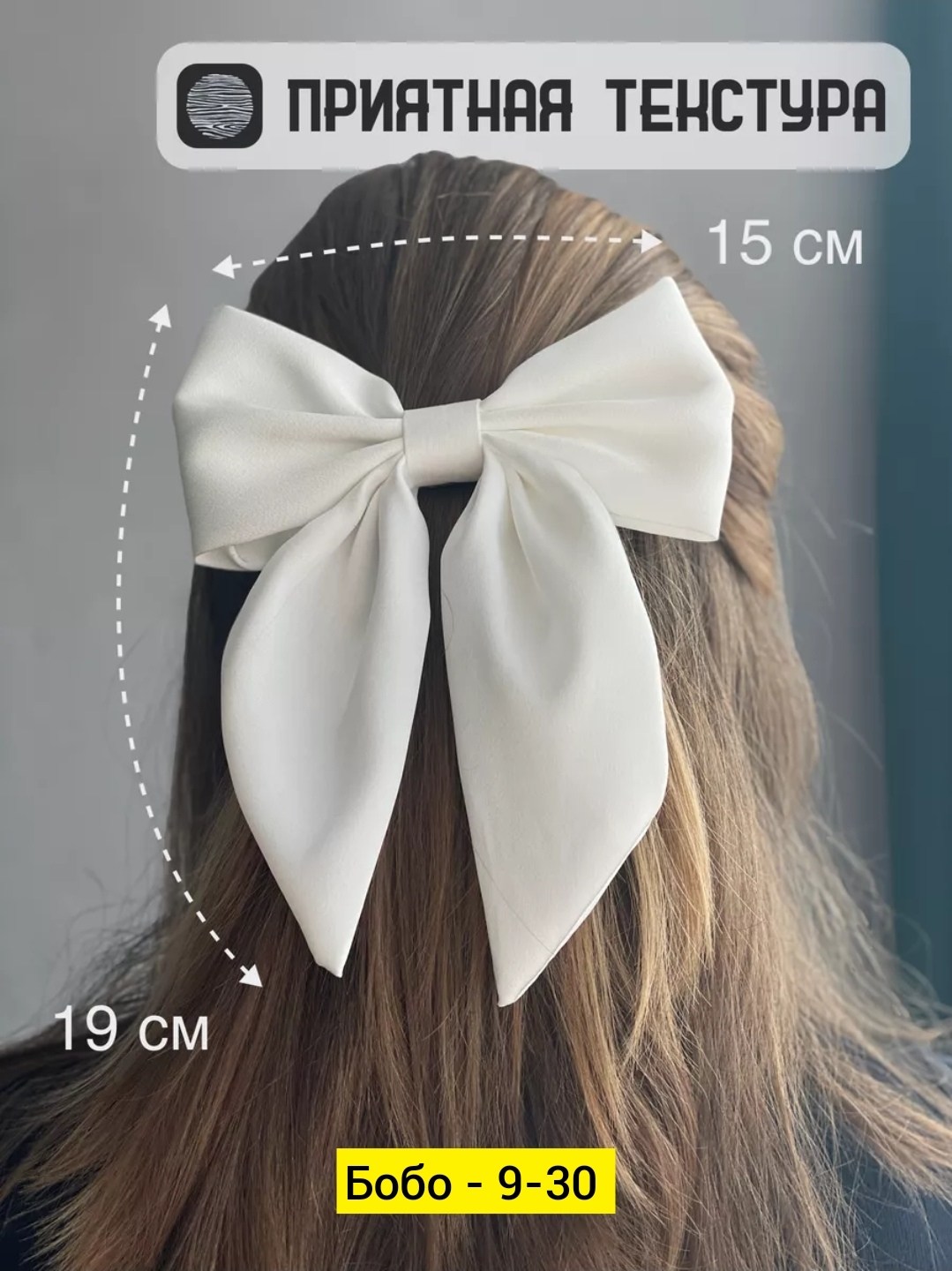 Бантик белый для волос на заколке.