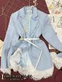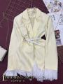 Классический пиджак, который подчеркнет линию плеч и скорректирует пропорции фигуры Манжеты и нижний край модели дополнили изысканным белым кружевом Универсальный, сочетается с любым предметом гардероба!.