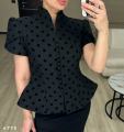 Пиджак с коротким пышным рукавом в горох (горох бархатный) Длина от плеча 56см Арт 4776.