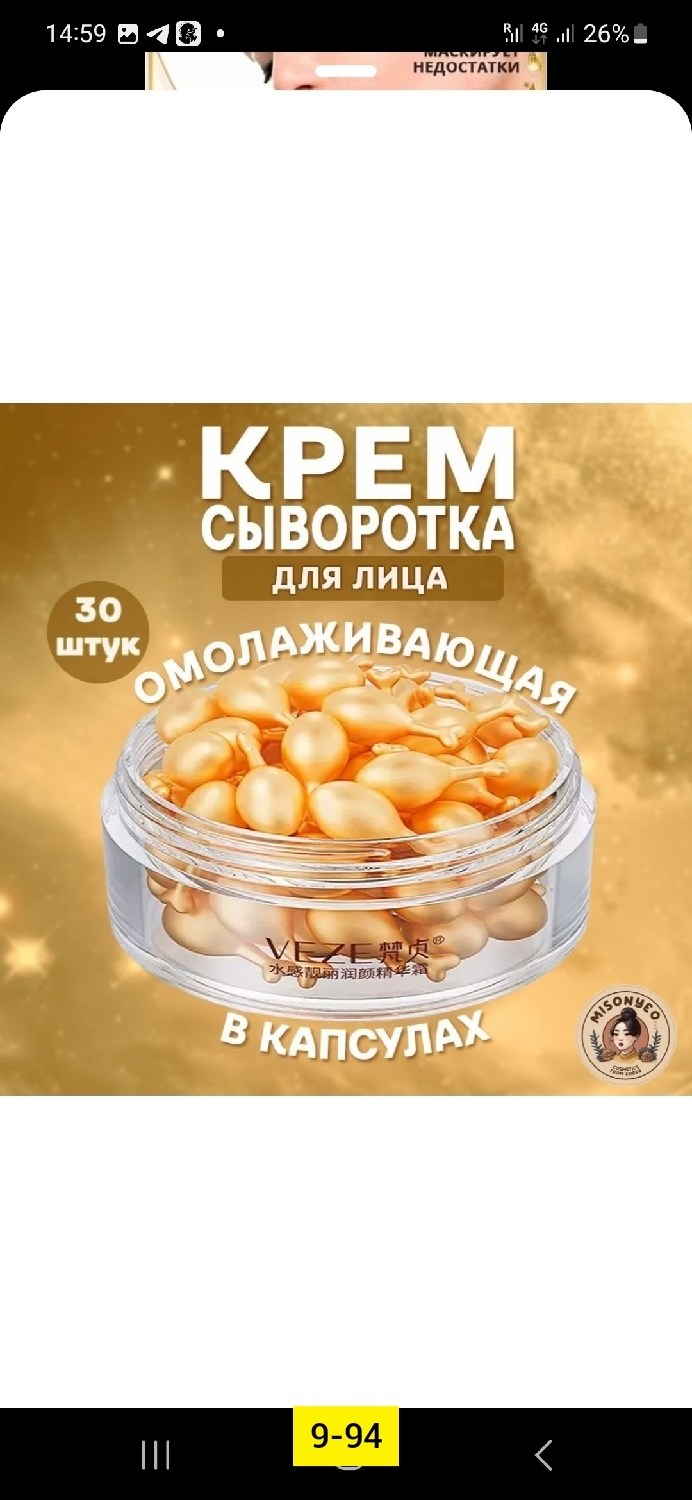 Veze омолаживающая крем-сыворотка для лица в капсулах, 30 шт Увлажняющая анти возрастная крем-сыворотка, запаянная в порционные капсулы Капсульные косметические средства имеют существенное преимущество перед традиционными эмульсиями и кремами в баночках и тюбиках,.
