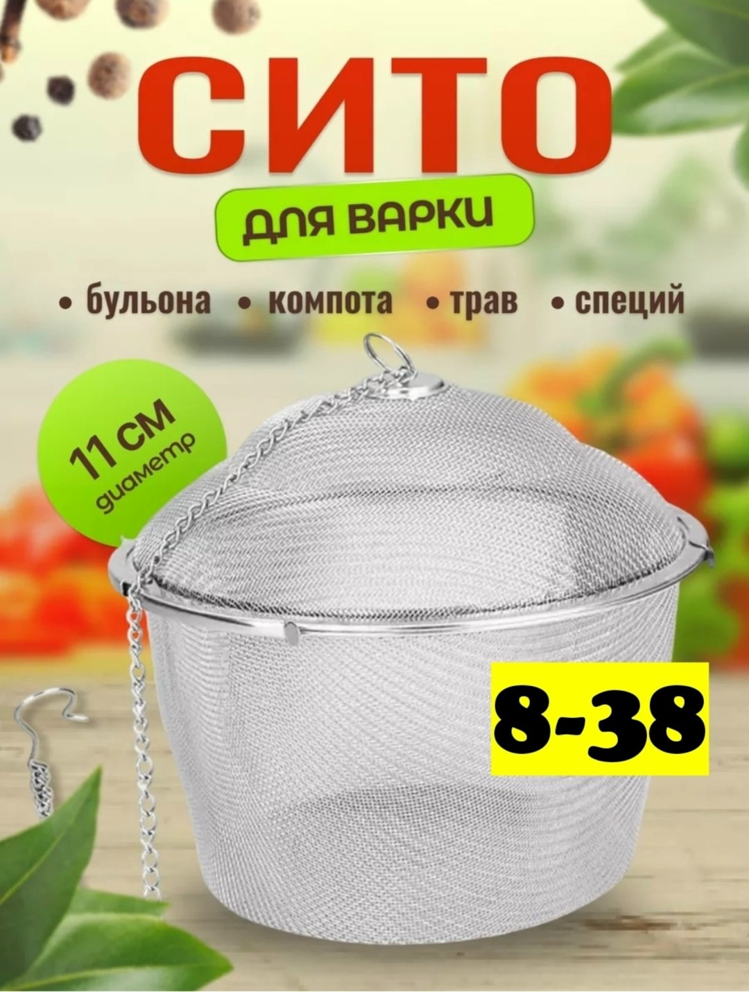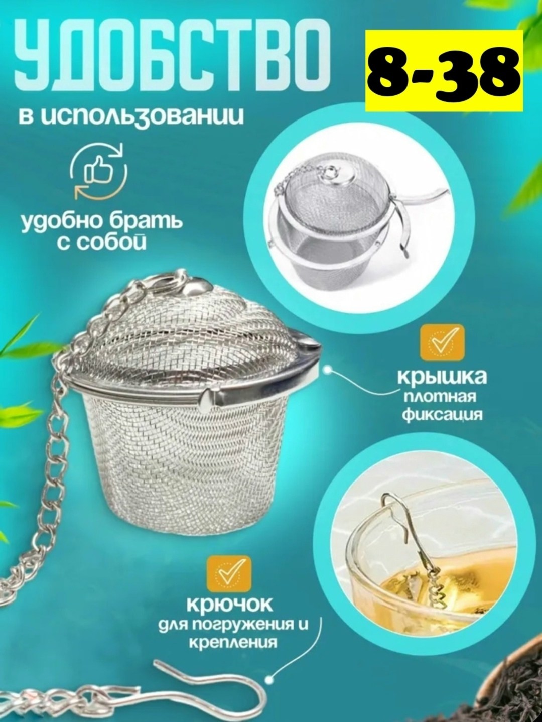 Цепочка с крючком позволяет зафиксировать ситечко на чашке или заварочном чайнике.
