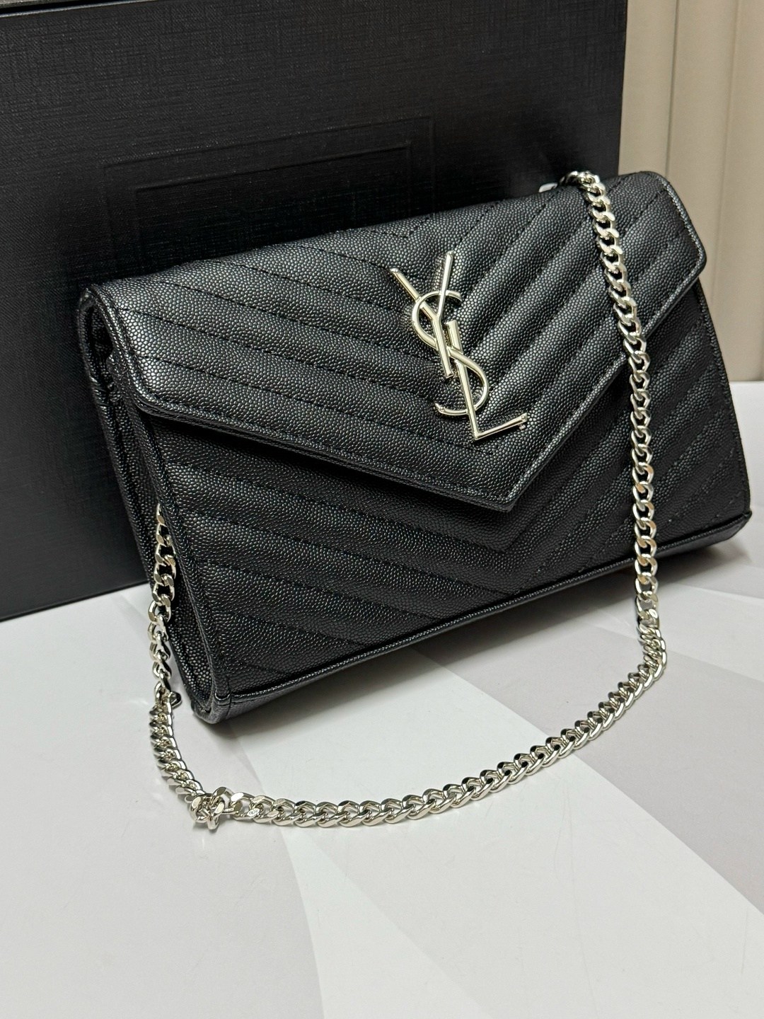 Комплект: клатч, цепочка, пыльник, коробка.
