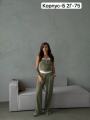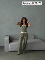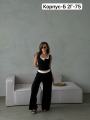 Женственный комплект из легкой тканьи: майка с белой комбинацией на тонкую бретельку, широкие брюки на резинке Идеален для стильных образов этим летом !.