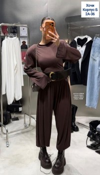 Костюм из мягкой вискозы: приталенный топ с завязками сзади и брюки-алладин с комфортной посадкой.