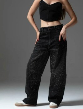 Джинсы баги со стразами