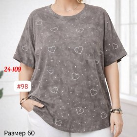 Женская футболка оверсайз (варнка)размер: 6070 (свободный оверсайз)ткань: варнка, мягкая и дышащаяпроизводство: фабричный китайстильная футболка с декоративными сердечками Удобная, лгкая и подходит для повседневной носки Хорошо сидит на фигуре, скрывает недостатки и не сковывает движения Подходит для дома, прогулок и работы цена:без выбора цвета 500₽ (упаковка 10 штук, разные цвета)с выбором цвета 800₽ за штуку.