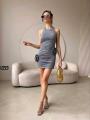 Обтягивающий платье с открытыми плечами тренд этого сезона представленные в 5- х расцветках.
