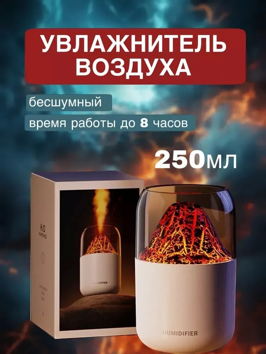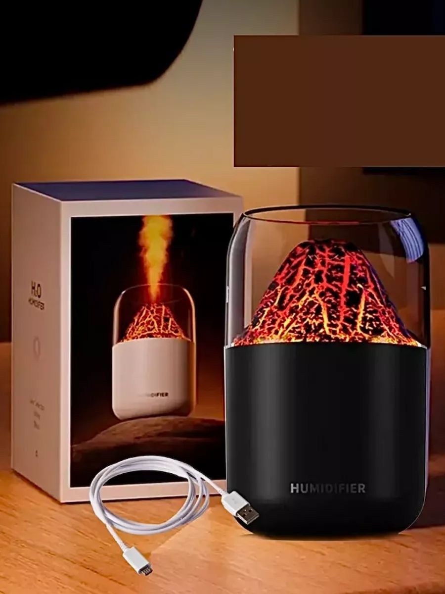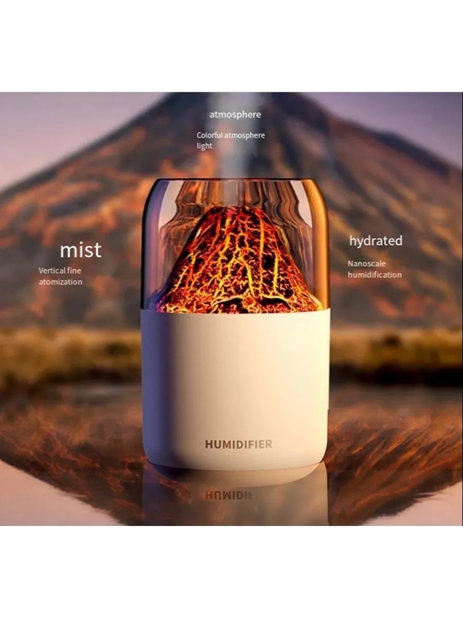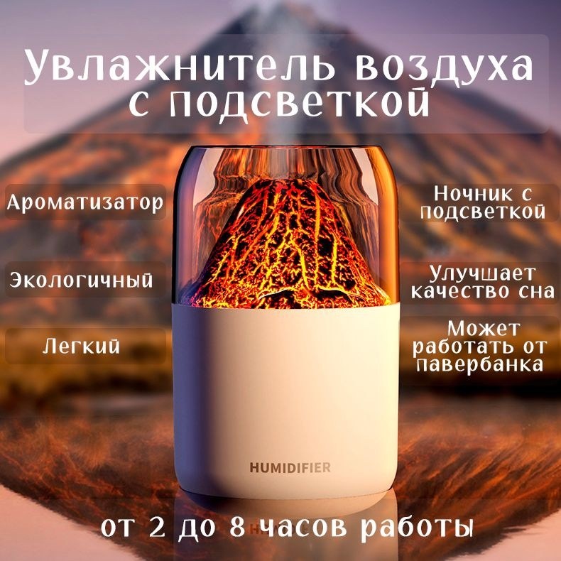 Увлажнитель воздуха вулкан мини, аромадиффузор с имитацией пламени, увлажнитель воздуха ночник, 300 мл,.
