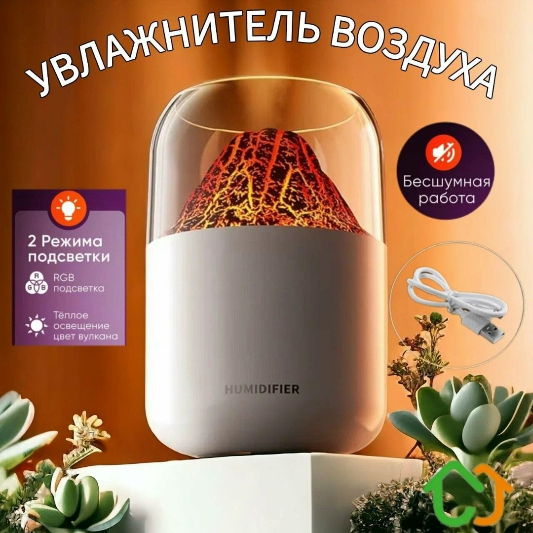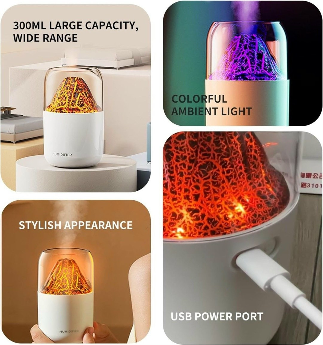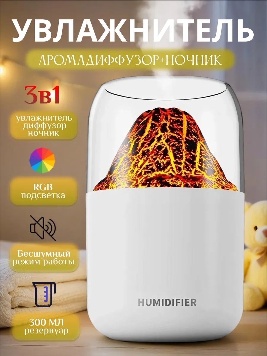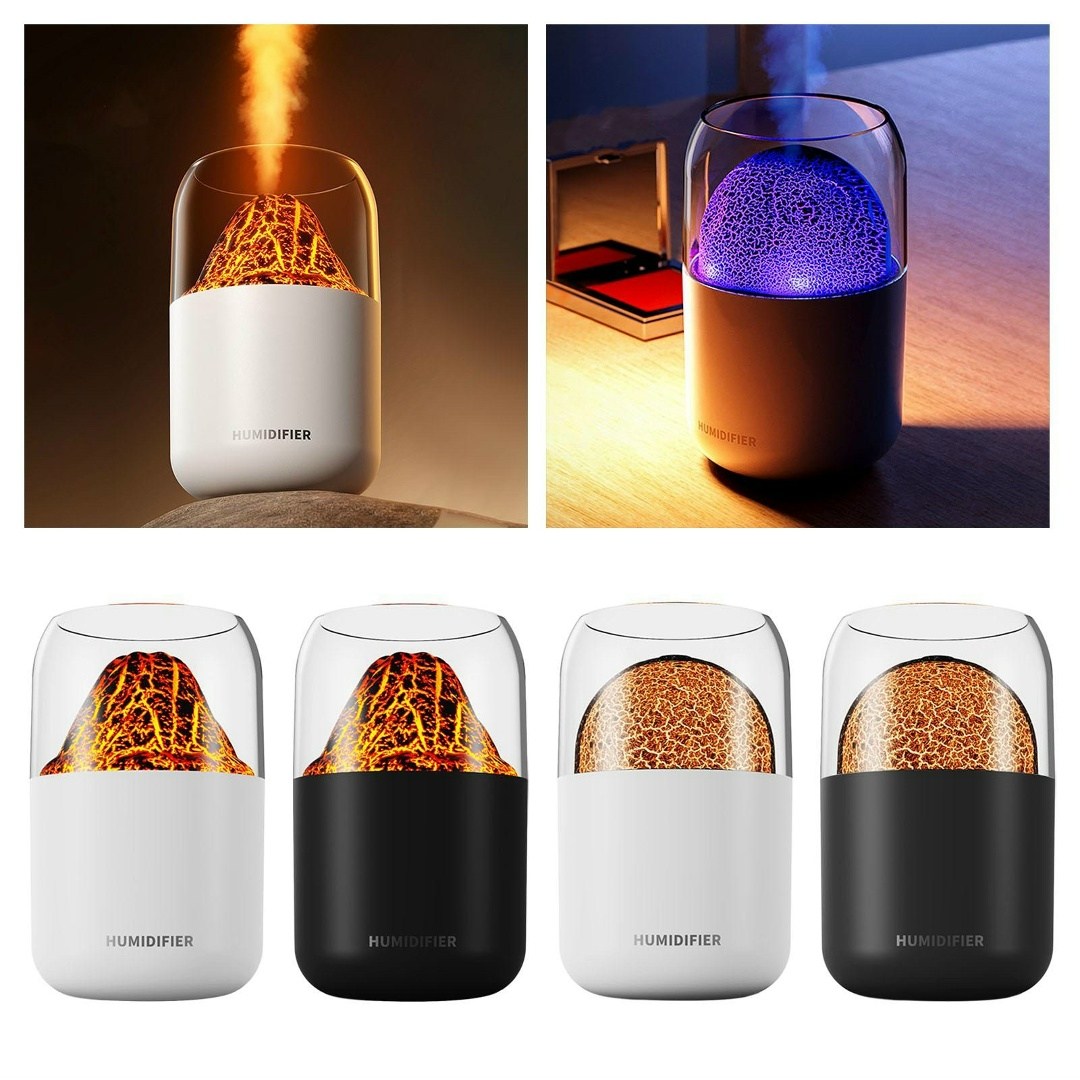 Увлажнитель воздуха вулкан мини, аромадиффузор с имитацией пламени, увлажнитель воздуха ночник, 300 мл,.