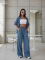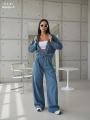 Брючный костюм в стиле оверсайз.