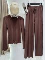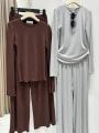 Этот стильный костюм-двойка выполнен из мягкого, комфортного трикотажа Лонгслив с длинными рукавами идеально сочетается с просторными широкими брюками, создавая расслабленный и современный силуэт.