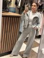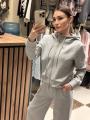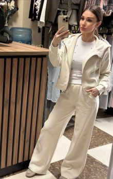 Весенний премиальный костюм-двойка кофта с капюшоном на молниибрюки-палаццо с эластичной талией;.