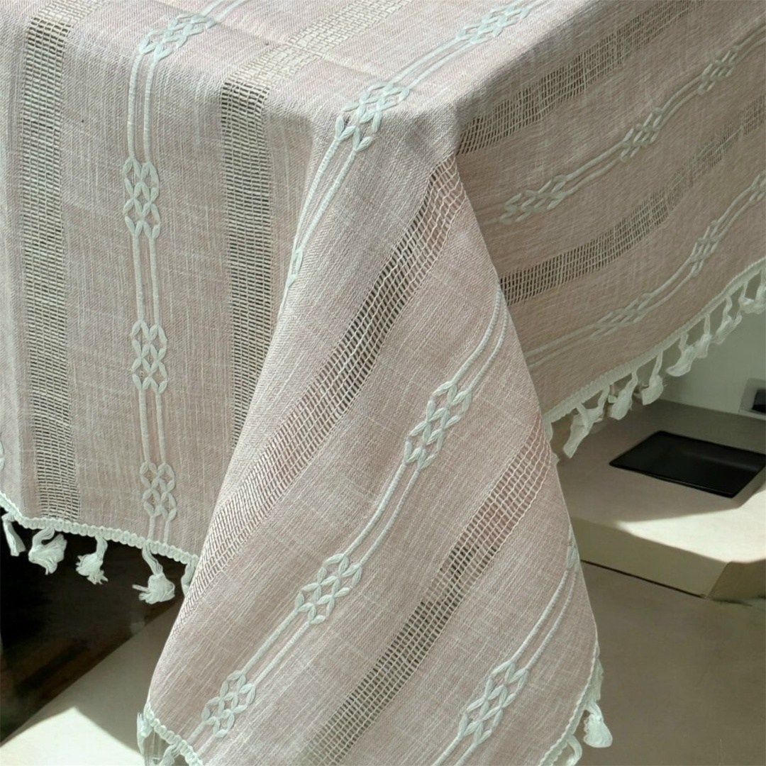 Скатерть лн с вышивкой с кружева качество очень хорошее с добавкой с полеэстер стирается хорошо.