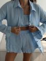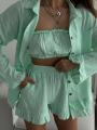 Этот костюм - тройка из качественного хлопка взрывает и приковывает взгляды: топ шорты рубашка!.