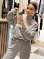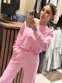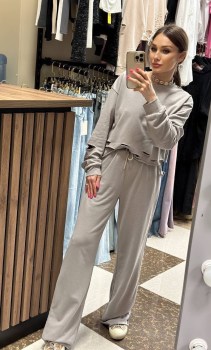 Костюм двойка из футера: свитшот свободного кроя с рванкой брюки палаццо.