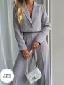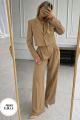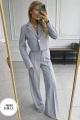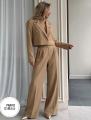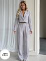 Пиджак имеет свободный крой, брюки палаццо добавят свободу и комфорт.
