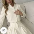 Женский укороченый пиджак с юбкой стильный ключевой элемент для шикарные ветровкиа Изготовленный из качественной костюмной тканьи с гладкой фактурой он подарит комфорт в повседневной и офисной обстановке.