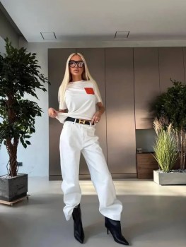 Стильные прямые джинсы hermes premium качества, имеет снежно- белый цвет, высокая посадка идеально подчеркивает линию талии, модель выполнена из 100 натурального мягкого хлопка, ремень в комплекте;.