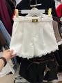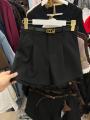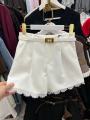 Шорты женские классические с высокой посадкой имеют свободный крой и обработанный край кружевом, прекрасно вписываются в деловой элегантный стиль.