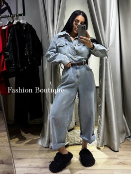 Стильный джинсовый комбинезон с поясом и акцентом на талию: эффектно вытягивает силуэт и смотрится дорого.